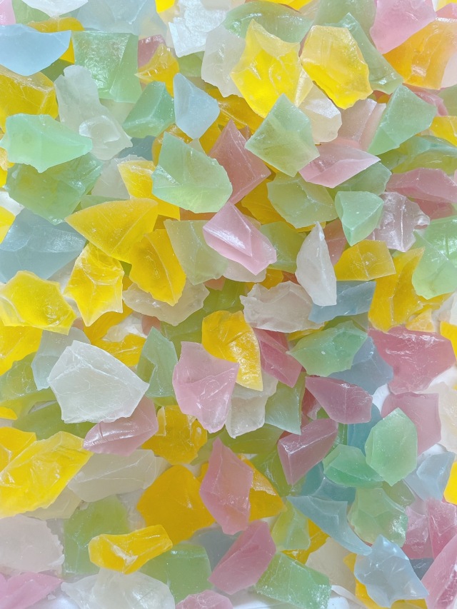 みどり製菓の琥珀糖は60年以上の伝統の製法で職人が丁寧に一つ一つ心を込めてお作りしています。