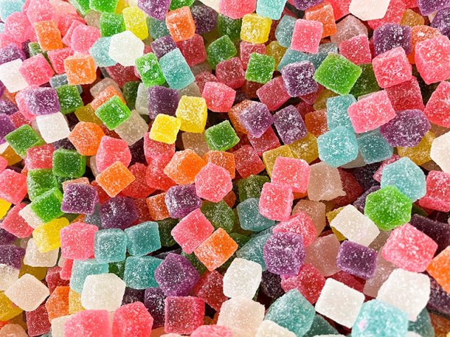 砂糖(国内製造)、水飴、寒天/香料、着色料(青1、赤3、黄4)